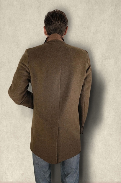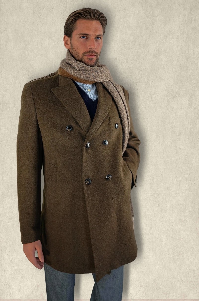 Abrigo de lana cruzado – Marrón oliva
