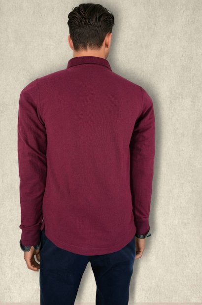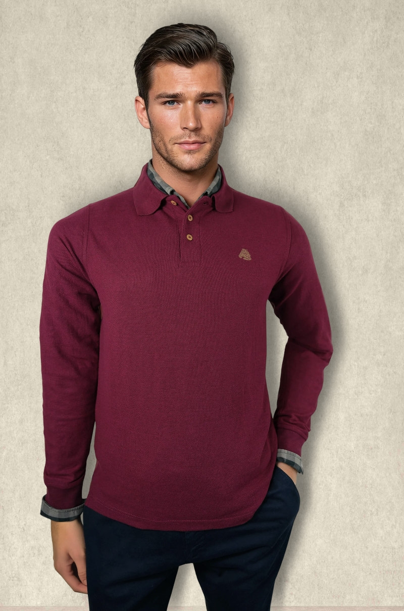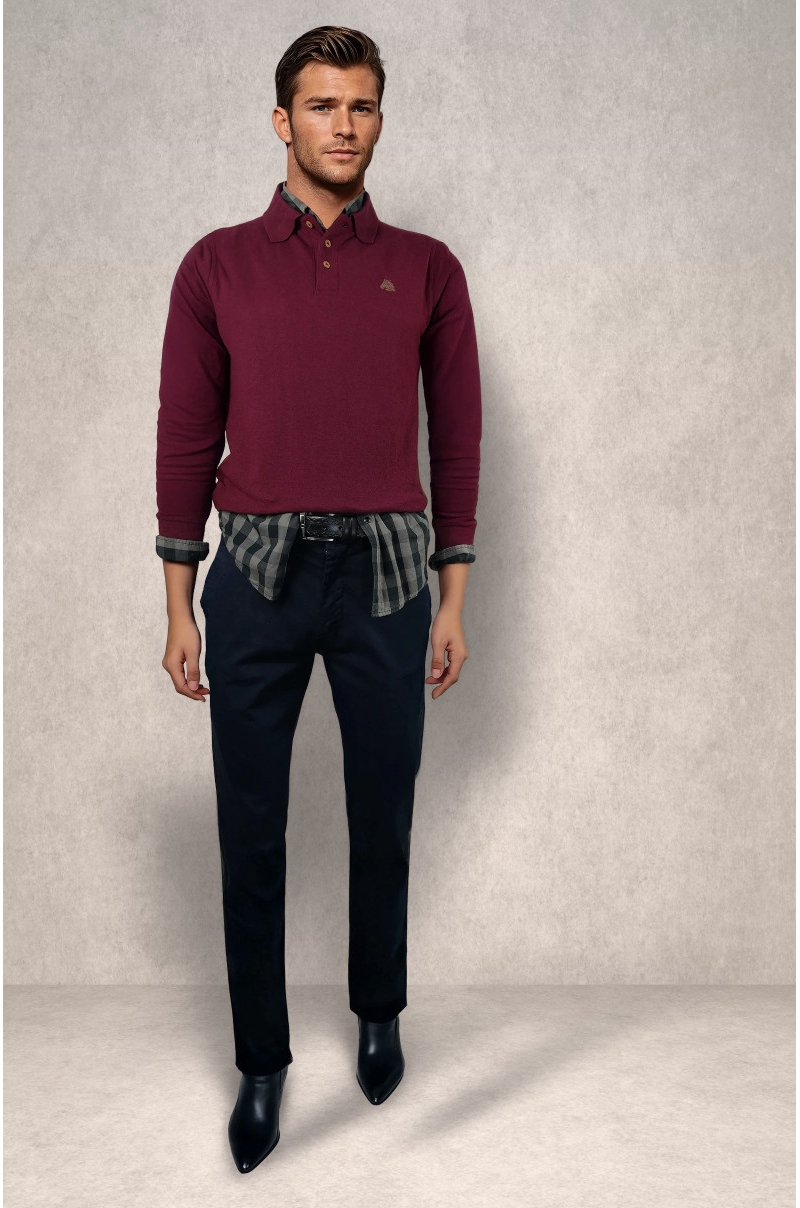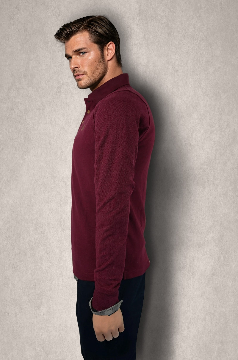 Polo prenda para diferentes ocasiones, confeccionado 100% algodón, manga larga, ajustado con corte lateral en la cintura, logo bordado en el pecho, tapete 3 botones, botones grabado láser de la marca.