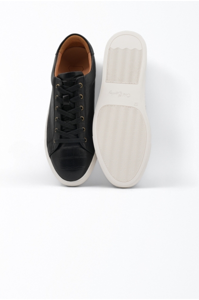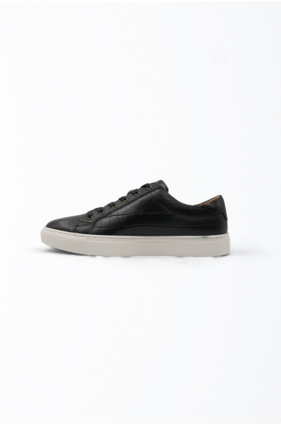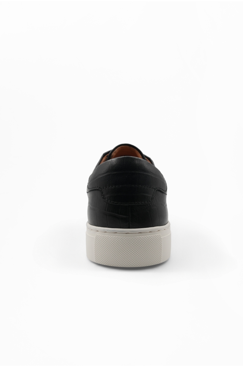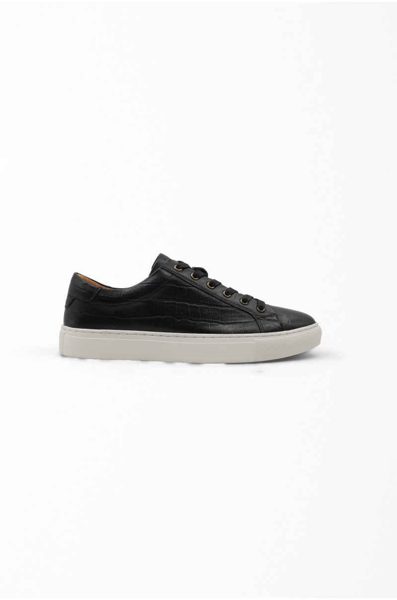 Diese Sneaker werden aus hochwertigem, natürlichem Rindsleder in Schwarz gefertigt und verfügen über eine elegante Prägung, die dem Design Struktur und Charakter verleiht. Ein Modell, das die Raffinesse von Leder mit dem Komfort eines urbanen Sneakers verbindet.