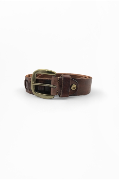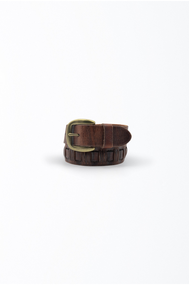 Cinturón de piel negro calado para hombre con hebilla envejecida