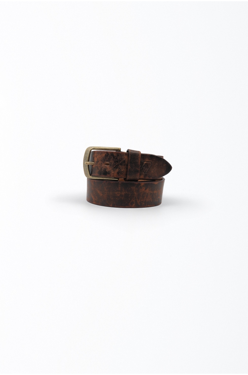 Cinturón de piel marrón efecto lavado para hombre con hebilla clásica en latón