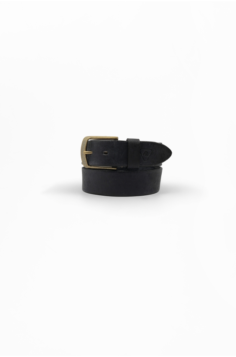 Cinturón de piel negro clásico para hombre con hebilla en latón envejecido