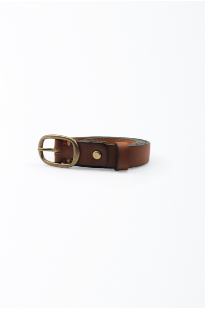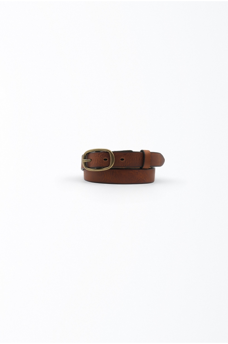 Cinturón de piel clásico en tono cuero con hebilla metálica envejecida