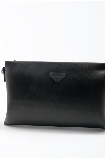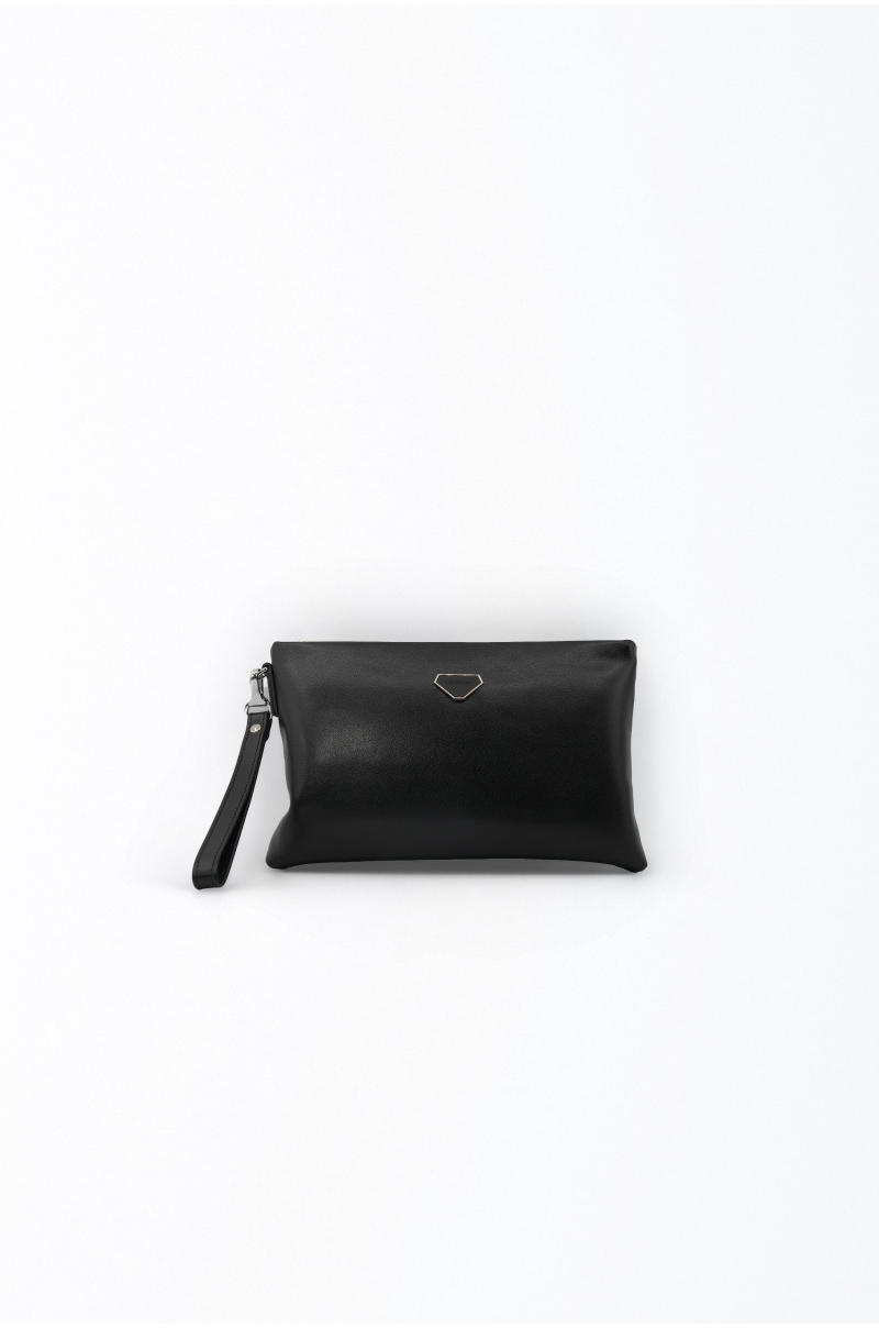 Pouch de piel negra de diseño limpio y minimalista, con cierre de cremallera. Elegante, ligero y funcional.