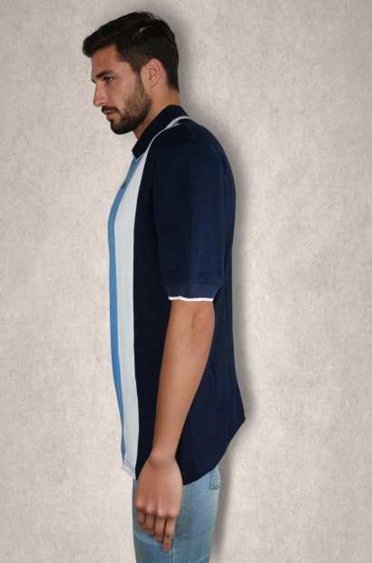 Polo prenda para diferentes ocasiones, doble franja vertical sobre los hombros, logo caballo bordado en el pecho, confeccionado 100% algodón, corte en los laterales de la cintura, tapete 2 botones, botones grabado de la marca.