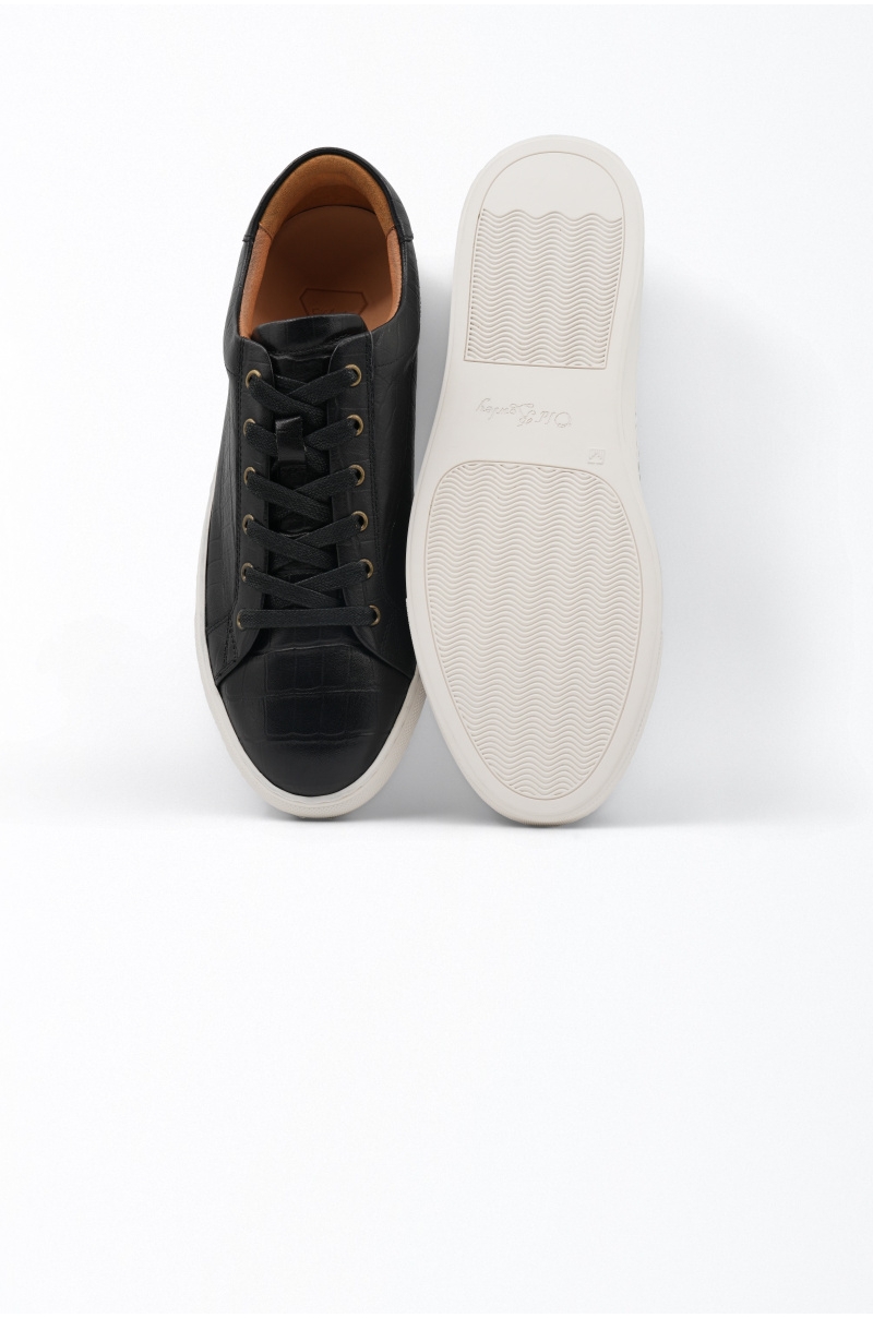 Sneakers crafted from high-quality natural cowhide leather in black, featuring an elegant embossed texture that adds depth and character to the design. A model that combines the sophistication of leather with the comfort of an urban sneaker.
