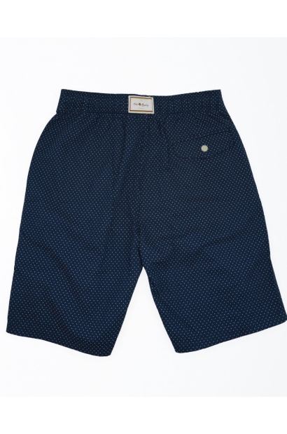 These men’s navy swim shorts with micro white dots combine timeless style with natural comfort, making them a versatile choice for summer.
