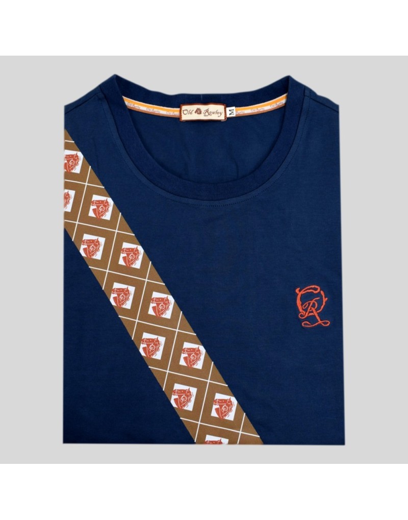 Prenda de vestir ligera y cómoda manga corta de punto de algodón banda diagonal impresión de diseño de la marca cuello redondo Material: 100% algodón Cuidados: No utilizar secadora, lavar a máquina a 30°C, programa delicado
