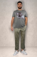 Prenda cómoda y ligera manga corta de punto de algodón letras estampadas impresión en el pecho cuello redondo