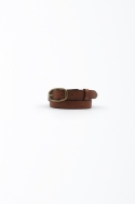 Cinturón de piel en marrón oscuro con diseño limpio y hebilla metálica envejecida. Un básico elegante y versátil.