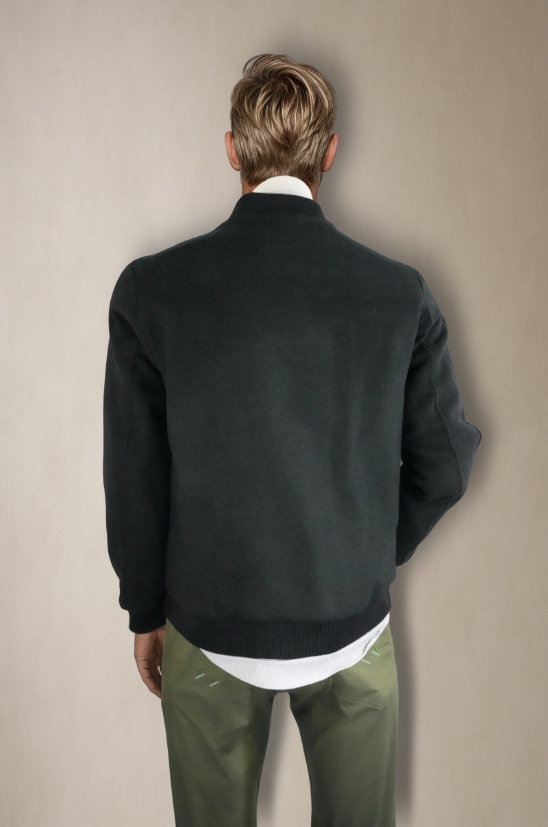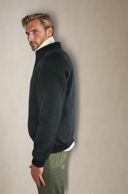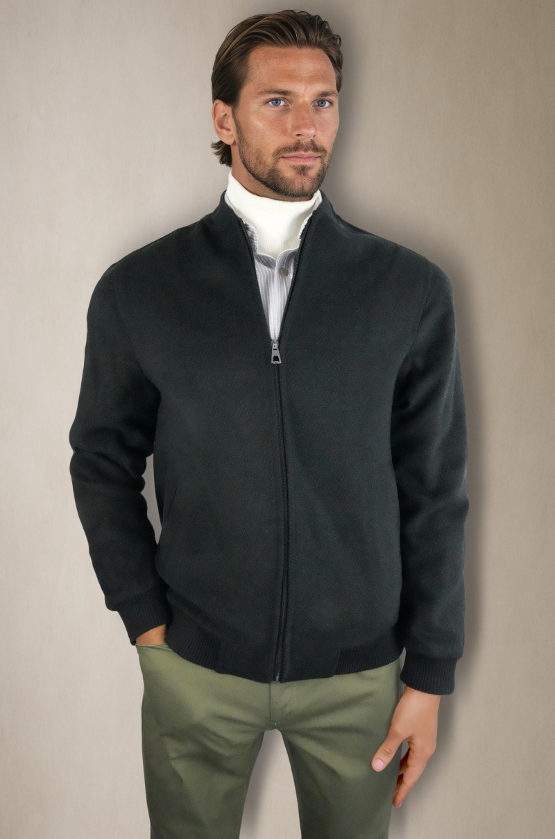Chaqueta tipo bomber de lana — cremallera, cuello alto y puños de canalé (gris oscuro)