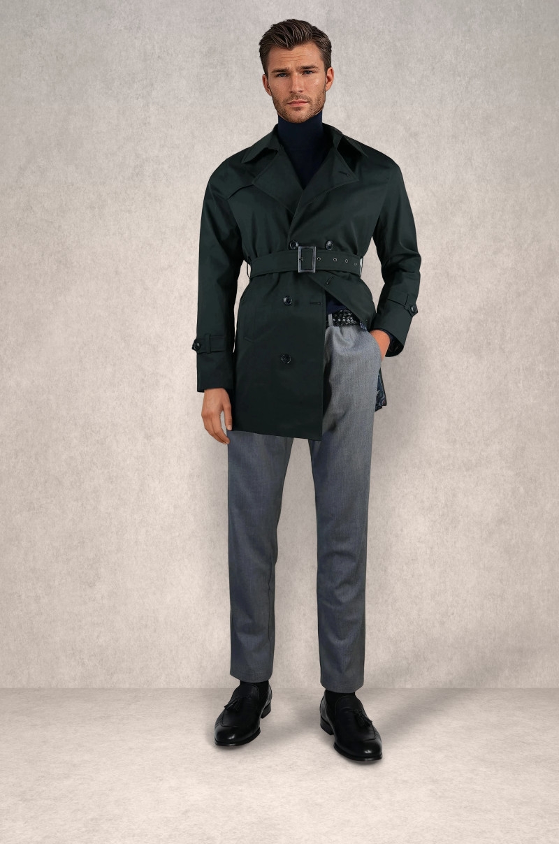 Trench clásico de hombre con cinturón y doble botonadura – Negro