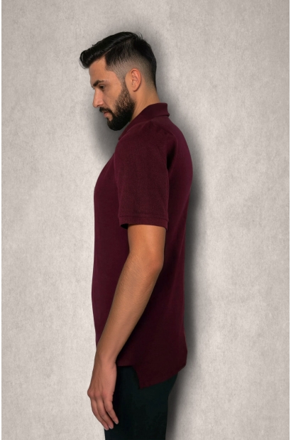 Polo bordeaux à manches courtes avec logo brodé Old Rowley. Élégance décontractée en tissu 100 % coton. Idéal pour un look casual sophistiqué.